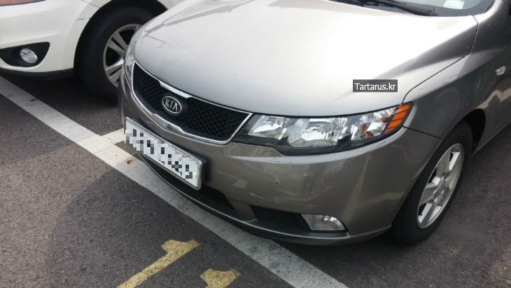 위 사진은 내가 운전한 차량(니로 하이브리드)과 피해 차량(포르테)의 파손 상태 모습이다. 피해 차량은 범퍼와 헤드라이트가 파손되었고, 내 차량은 뒷 범퍼가 긁혔고 충격 때문에 범퍼와 휀더 사이가 벌어지면서 흙받이가 떨어져 나갔다.